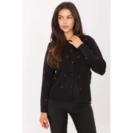 Půvabný dámský svetr s ležérním charakterem, ideální pro každodenní stylizace. Vyrobena z příjemné směsi polyesteru, akrylu a vlny, která poskytuje teplo a pohodlí při nošení. Model má standardní délku, dlouhý rukáv a okrouhlý výstřih, jeho přední část a rukávy zdobí vyšívaná srdíčka, která dodávají celku dívčí půvab. Zapínání na knoflíky zdůrazňuje klasický střih a dělá svetr skvěle padnoucí jak s džínami, tak s sukní.