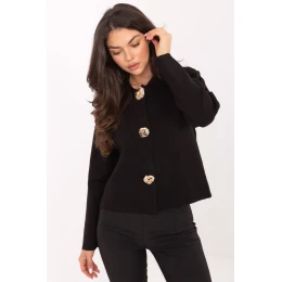 Elegantní dámský svetr vyrobený z měkké směsi viskózy a nylonu, která zajišťuje pohodlí při nošení. Model má standardní délku a dlouhý rukáv, límeček dodává celku klasický charakter. Svetr zdobí ozdobné prvky vpředu ve formě broží a zapínání na suchý zip umožňuje pohodlné a rychlé přizpůsobení. Udržovaný v hladkém, dominujícím vzoru, se hodí jak do elegantních, návštěvních, pracovních stylizací, tak do každodenních kombinací, přidávajíc šarm každému outfitu.