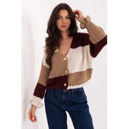 Svetr s pruhy pro ženy je stylovým prvkem šatníku v casualovém stylu, ideální jak do práce, tak na každý den. Vyrobený z kombinace akrylu, vlny, viskózy a polyamidu je měkký, pohodlný a příjemný na nošení. Barevný vzor dodává svěžest a módní charakter. Standardní délka se skvěle hodí ke kalhotám i sukním. Dlouhý rukáv zakončený volánem přidává celku jemnou, ženskou eleganci. Výstřih do srdce prodlužuje krk a zdůrazňuje ženskou siluetu. Zapínání na knoflíky umožňuje nosit svetr jak samostatně, tak jako vrchní oděv. Je to praktická a zároveň stylová volba, která snadno doplní mnoho každodenních outfitů.