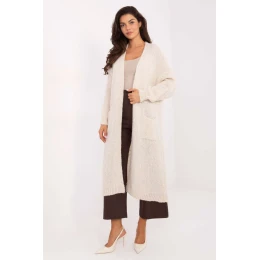Dlouhý dámský kardigan v casual stylu, ideální na každý den i do práce. Vyroben z měkké a příjemné směsi polyakrylu, polyamidu, vlny a viskózy, poskytuje pohodlí po celý den. Model bez zapínání, po kolena, s dlouhými rukávy a praktickými kapsami, kombinuje eleganci s funkcionalitou. Hladká textura materiálu umožňuje snadné kombinování kardiganu s různými stylizacemi, vytvářející pohodlné a stylové outfity.
