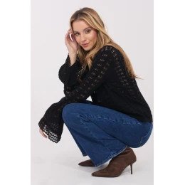 Stylový dámský svetr v boho stylu, ideální pro každodenní outfit. Model se vyznačuje efektním ažurovým vzorem, který dodává celku lehkost, jemnost a moderní, umělecký charakter. Svetr je vyroben z kombinace polyesteru a viskózy, díky čemuž je měkký, příjemný na dotek a pohodlný k nošení. Standardní délka z něj činí univerzální střih, který lze snadno sladit s různými kousky oblečení. Dlouhé zvonové rukávy zdůrazňují boho atmosféru a dodávají celku uvolněnou eleganci. Model má výstřih do srdce, který opticky zeštíhlí postavu, a zapínání na knoflíky, což umožňuje nosit svetr jak rozepnutý, tak zapnutý. To je skvělá volba pro ženy, které ocení pohodlí, přirozený styl a originální detaily v každodenních outfitech.