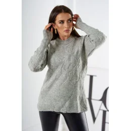 Svetr nasazený přes hlavu s módní vazbou šedý