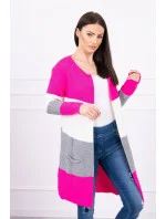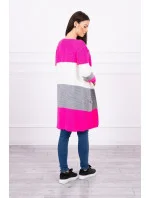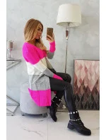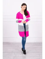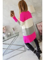Pruhovaný svetr s kapucí grafit + béžová + růžová neonová