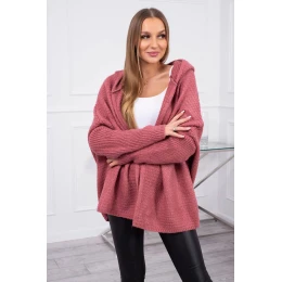 Svetr s kapucí a netopýřími rukávy tmavě růžový