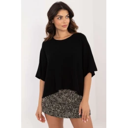 Elegantní dámský oversized svetr, který se skvěle hodí jak do každodenního života, tak do práce. Vyrobený z směsi viskózy, polyesteru a nylonu, poskytuje pohodlí a styl. Svetr je oboustranný, co umožňuje vytváření různých stylizací. Má hladkou strukturu, díky čemuž se hodí k mnoha outfitům, a jeho krátká délka a 3/4 rukávy mu dodávají moderní charakter. Kulatý výstřih zdůrazňuje krk, a absenci zapínání dodává celku lehkost a volnost. Je to ideální volba pro ženy, které si cení eleganci spojenou s pohodlím.