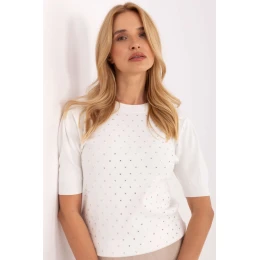 Elegantní dámský svetr s krátkými nafouklými rukávy je stylovým návrhem do práce i na každý den. Vyrobený z měkké směsi viskózy, polyesteru a nylonu poskytuje pohodlí nošení a elegantní vzhled. Model standardní délky s kulatým výstřihem se vyznačuje ozdobnými džety po celé přední části, které mu dodávají výjimečný a efektní charakter. Ideální k kombinaci jak se sukněmi, tak s elegantními kalhotami, vytvářejí moderní každodenní nebo kancelářské stylingy.