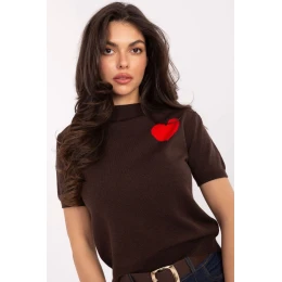 Elegantní a pohodlný dámský svetr ideální na každý den. Vyrobený z příjemné směsi viskózy, polyamidu a PBT, poskytuje pohodlí a skvělé přizpůsobení postavě. Model s standardní délkou a krátkým rukávem se skvěle hodí jak do každodenního, tak do ženského stylu. Kulatý výstřih decentně zdůrazňuje krk, a potisk ve tvaru srdce na úrovni prsou dodává celku šarm a dívčí grády. Je to skvělá volba pro ženy, které si váží módního a zároveň pohodlného stylu na každý den.