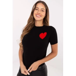 Elegantní a pohodlný dámský svetr ideální na každý den. Vyrobený z příjemné směsi viskózy, polyamidu a PBT, poskytuje pohodlí nošení a skvělé přizpůsobení postavě. Model standardní délky s krátkým rukávem se skvěle hodí jak do každodenních, tak do ženských stylizací. Kulatý výstřih decentně zdůrazňuje krk, a potisk ve tvaru srdce v oblasti hrudi dodává celku šarm a dívčí grády. Skvělá volba pro ženy, které si cení módního a zároveň pohodlného stylu na každý den.