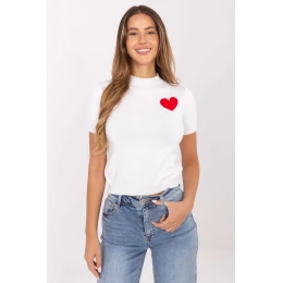 Elegantní a pohodlný dámský svetr ideální na každý den. Vyrobený z příjemné směsi viskózy, polyamidu a PBT, poskytuje pohodlí a skvělé přizpůsobení postavě. Model standardní délky s krátkým rukávem se skvěle hodí jak do každodenních, tak do ženských stylizací. Kulatý výstřih jemně zdůrazňuje krk, a potisk ve tvaru srdce v oblasti hrudníku dodává celku šarm a dívčí grády. Skvělá volba pro ženy, které ocení módní a zároveň pohodlný styl na každý den.