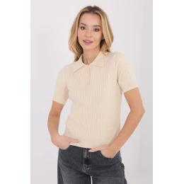 Elegantní dámský svetr s ležérním charakterem, ideální pro každodenní outfit i do práce. Model se vyznačuje různorodou texturou materiálu, která dodává celku elegantní a zároveň moderní vzhled. Svetr je vyroben z kombinace viskózy a nylonu, díky čemuž je měkký, příjemný na dotek a odolný. Standardní délka činí střih univerzálním a snadno kombinovatelným jak s kalhotami, tak s sukní. Krátký rukáv dodává lehkost a činí model skvělým pro teplejší dny nebo jako součást vrstveného outfitu. Další výhodou je límec a zapínání na knoflíky typu polo, které dávají svetru klasický, lehce sportovní charakter. To je skvělá volba pro ženy, které oceňují pohodlí, funkčnost a nadčasový styl na každý den.