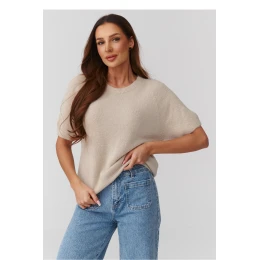 Elegantní dámský svetr v univerzální velikosti s lehce volným oversized střihem, který skvěle padne do každodenních i elegantních stylizací. Model s loketním rukávem je ideální volbou na přechodnou sezónu jaro, léto a brzkou podzim. Svetr je vyroben z měkké a jemné pleteniny (polyamid, baby suri alpaka, akryl, vlna, elastan), příjemné na dotek a pohodlné na nošení. Klasický kulatý výstřih a decentní lemy dodávají celku estetický a nadčasový charakter. Moderní barvy oživí stylizaci a skvěle ladí jak s jasnými, tak tmavými kousky oblečení. Vyrobeno v Itálii.