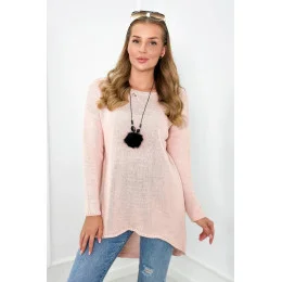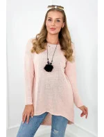 Komplet s náhrdelníkem halenka + kalhoty tmavě pudrově růžová