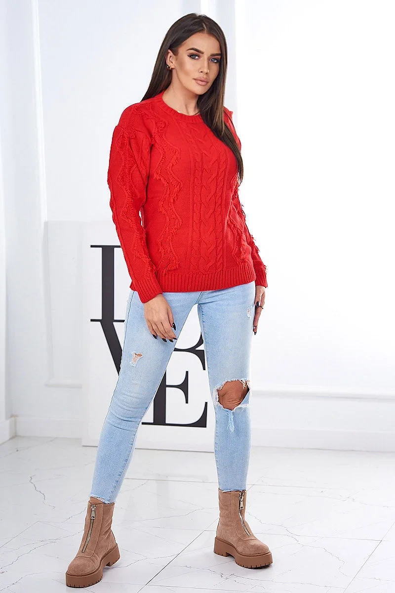 Svetr s pleteninou červený