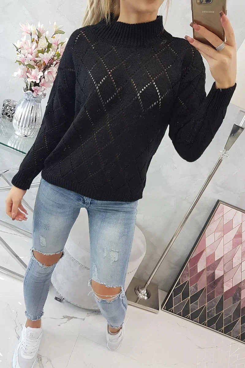 Svetr s polovičním rolákem a kosočtvercovým vzorem černý
