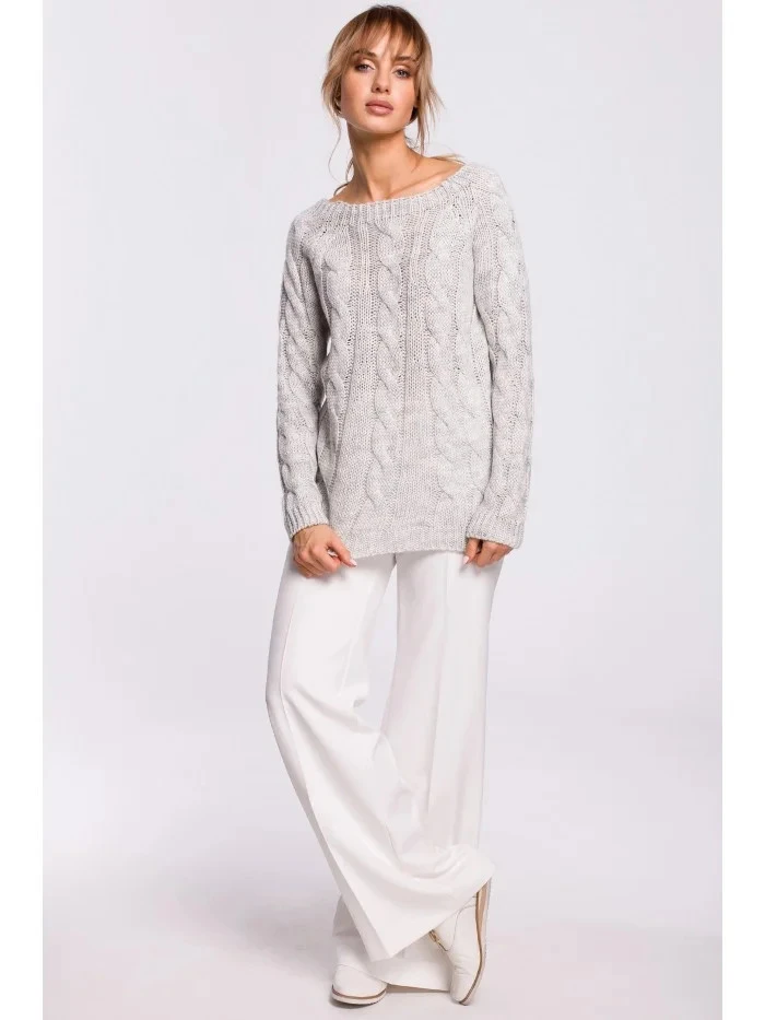Svetr s výstřihem Bateau M511 šedý - Moe