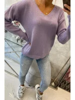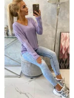 Svetr dámský z viskózy s výstřihem do V světle fialový