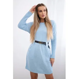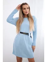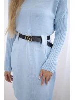 Tmavě modré dámské šaty se širokým páskem k zavazování model 6703284