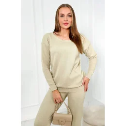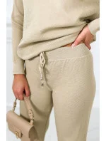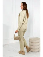Set 3 v 1 mikina + top + kalhoty tmavě béžová