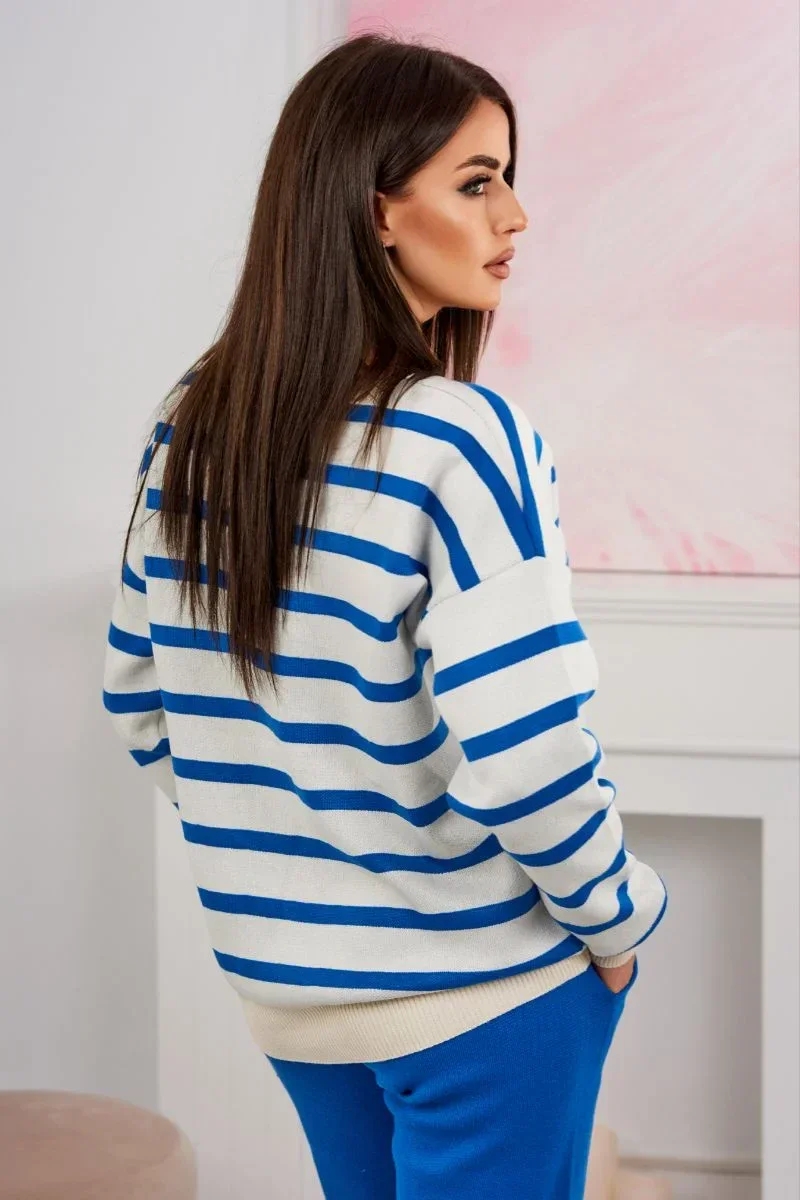 Svetr set Pruhovaná mikina + Kalhoty chrpově modrá