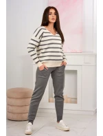 Svetr set Pruhovaná mikina + Kalhoty šedý