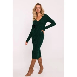 Svetrové šaty s V výstřihem M824 zelené - Moe