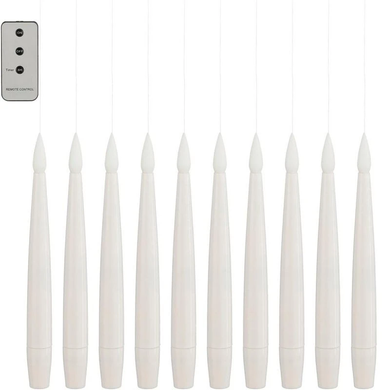 svíčky 10 LED v teplé bílé barvě vytvářejí útulnou a elegantní vánoční atmosféru připomínající klasické vánoční dekorace.