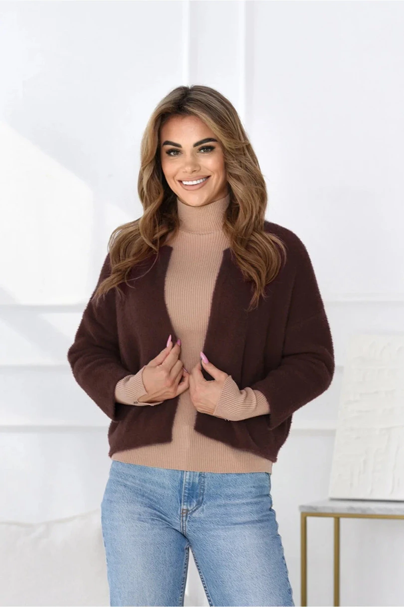 Narzutka-bolerko damskie to elegancki i praktyczny element garderoby, który doskonale uzupełnia zarówno codzienne, jak i bardziej oficjalne stylizacje. Wykonana z niezwykle miłego w dotyku poliamidu, zapewnia komfort noszenia przez cały dzień. Krótki fason z rękawem 7/8 pięknie podkreśla sylwetkę i świetnie komponuje się z sukienkami, bluzkami czy topami. Brak guzików nadaje lekkości, a wszyta w pasie guma z tyłu subtelnie modeluje talię, gwarantując idealne dopasowanie. To ponadczasowy dodatek, który sprawdzi się zarówno na co dzień, jak i podczas wyjątkowych okazji.