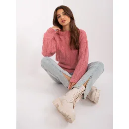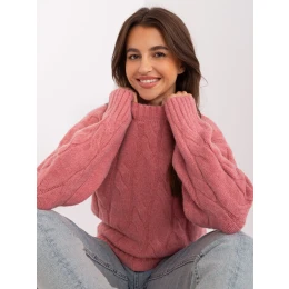 Růžový kostkovaný a žebrovaný svetr .