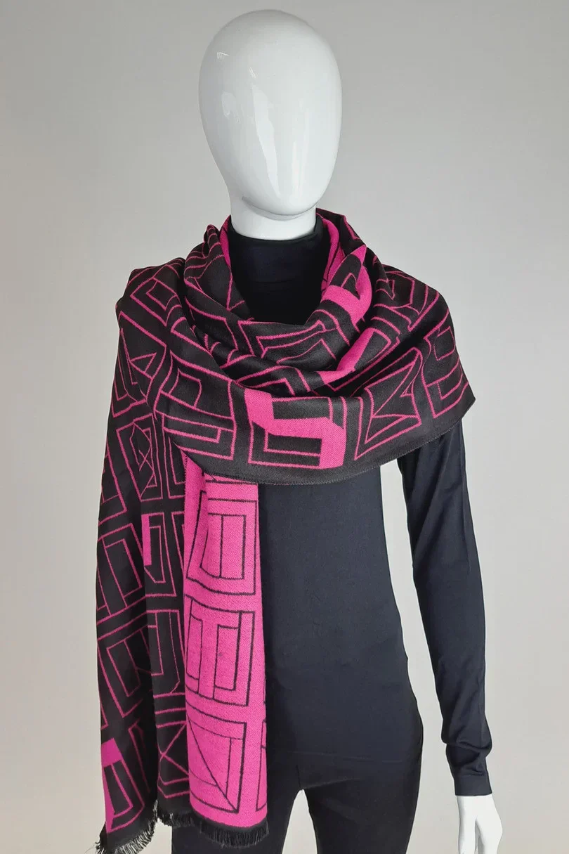 Krásný, velký, oboustranný šál s módním vzoremór. Mimořádně měkká a na dotek příjemná tkanina připomínající kašmír.