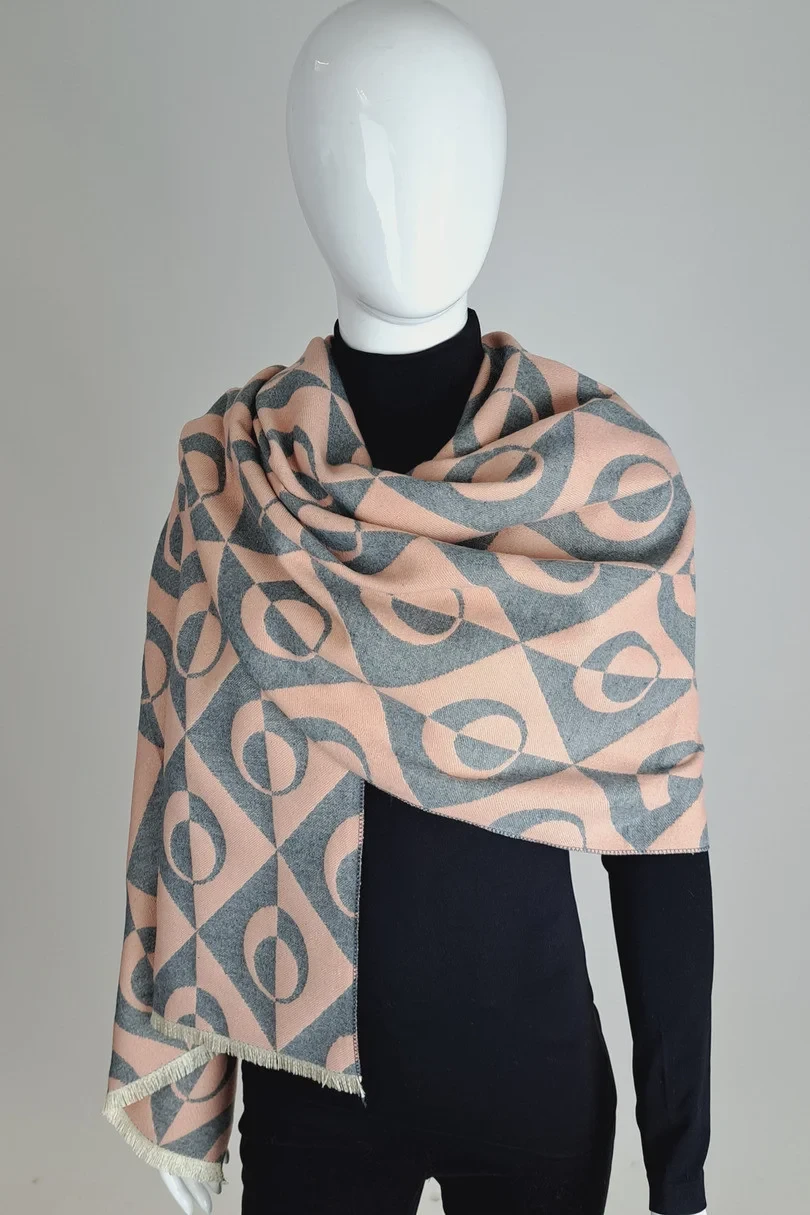 Krásný velký šál s módním vzorem. Mimořádně měkká a na dotek příjemná tkanina připomínající kašmír.