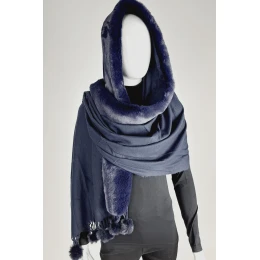 Krásná velká šála s přiloženým límcem z umělé kožešiny a bambulí. Mimořádně měkká a na dotek příjemná tkanina připomínající kašmír