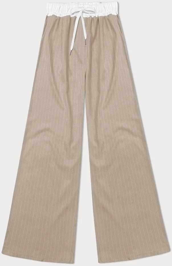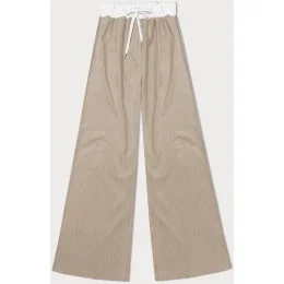 Tmavě béžové široké dámské pruhované kalhoty (18629)