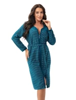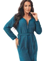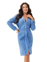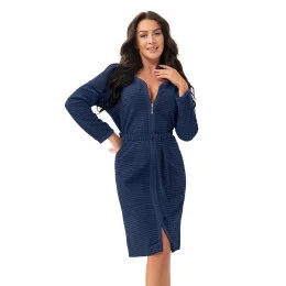 Bavlněný dámský župan s dlouhými rukávy, jemným žebrovaným vzorem, zapínáním na zip a dodatečným zavazováním v pase, kapsami na úrovni boků.