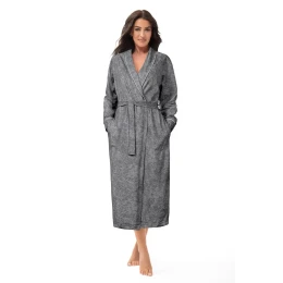 Damski szlafrok FR-384 Dorota to elegancja i komfort w jednym! Wykonany w 100% z wysokiej jakości bawełnianej dzianiny, jest niezwykle miękki, przewiewny i przyjazny dla skóry. Klasyczny szalowy kołnierz, długie rękawy oraz wiązanie w pasie zapewniają wygodę i stylowy wygląd. Dodatkowym atutem są praktyczne kieszenie na wysokości bioder, które podnoszą funkcjonalność szlafroka.