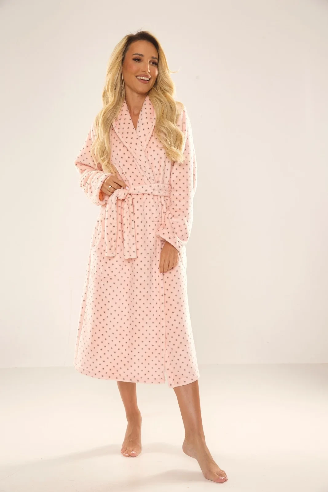 Dlouhý dámský župan, který je vyrobený z měkkého materiálu typu "soft" příjemného na dotyk.