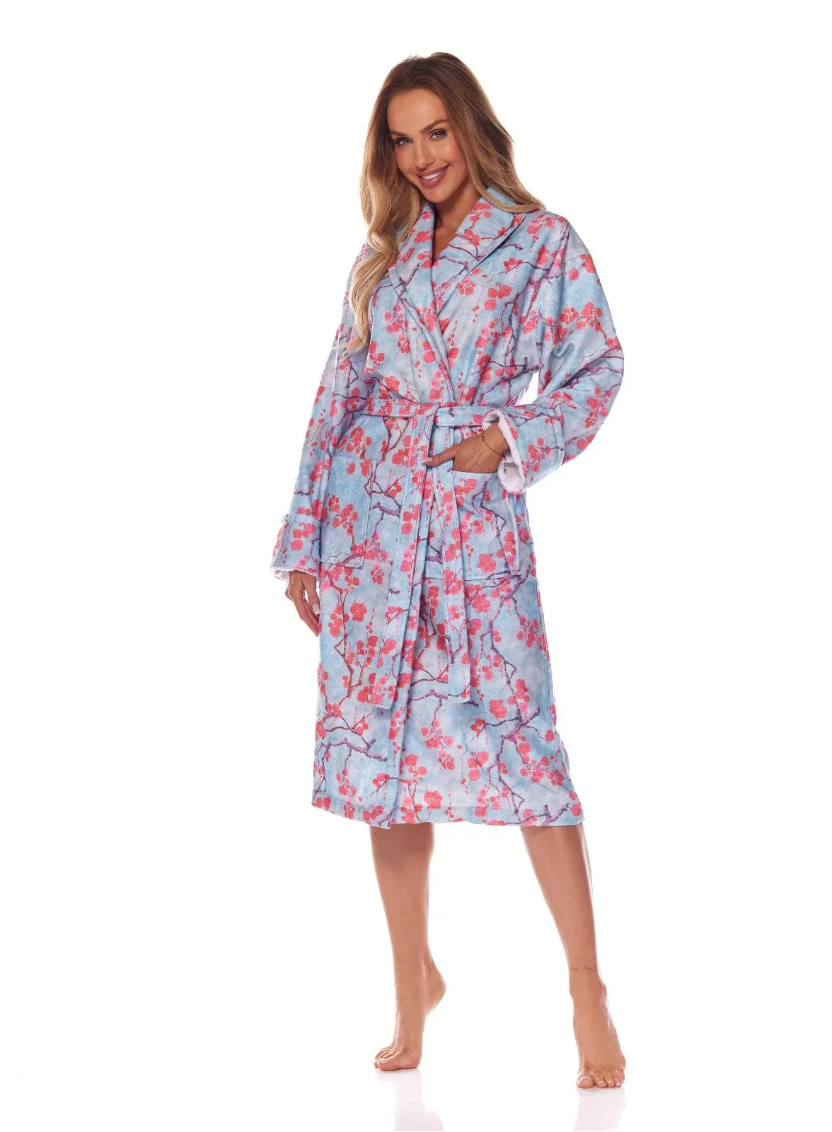 Župan je vyrobený z měkké vzorované tkaniny s přídavkem bambusu. Model má dlouhé rukávy, kapsy a v pase se zavazuje.