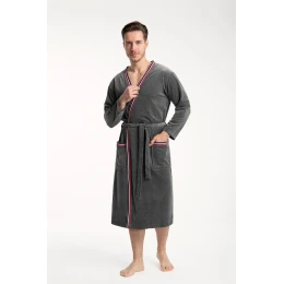 Pánský župan Luna s dlouhými rukávy a barevnými záhyby, zavazování na pásek, s kapsami, délka do půli lýtek.
