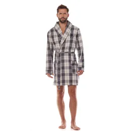 Pánský župan s dlouhými rukávy ušitý z flanelu nejvyšší kvality v pestrobarevném károvaném vzoru.
