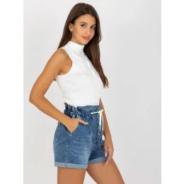 Modré džínové šortky s knoflíky.
