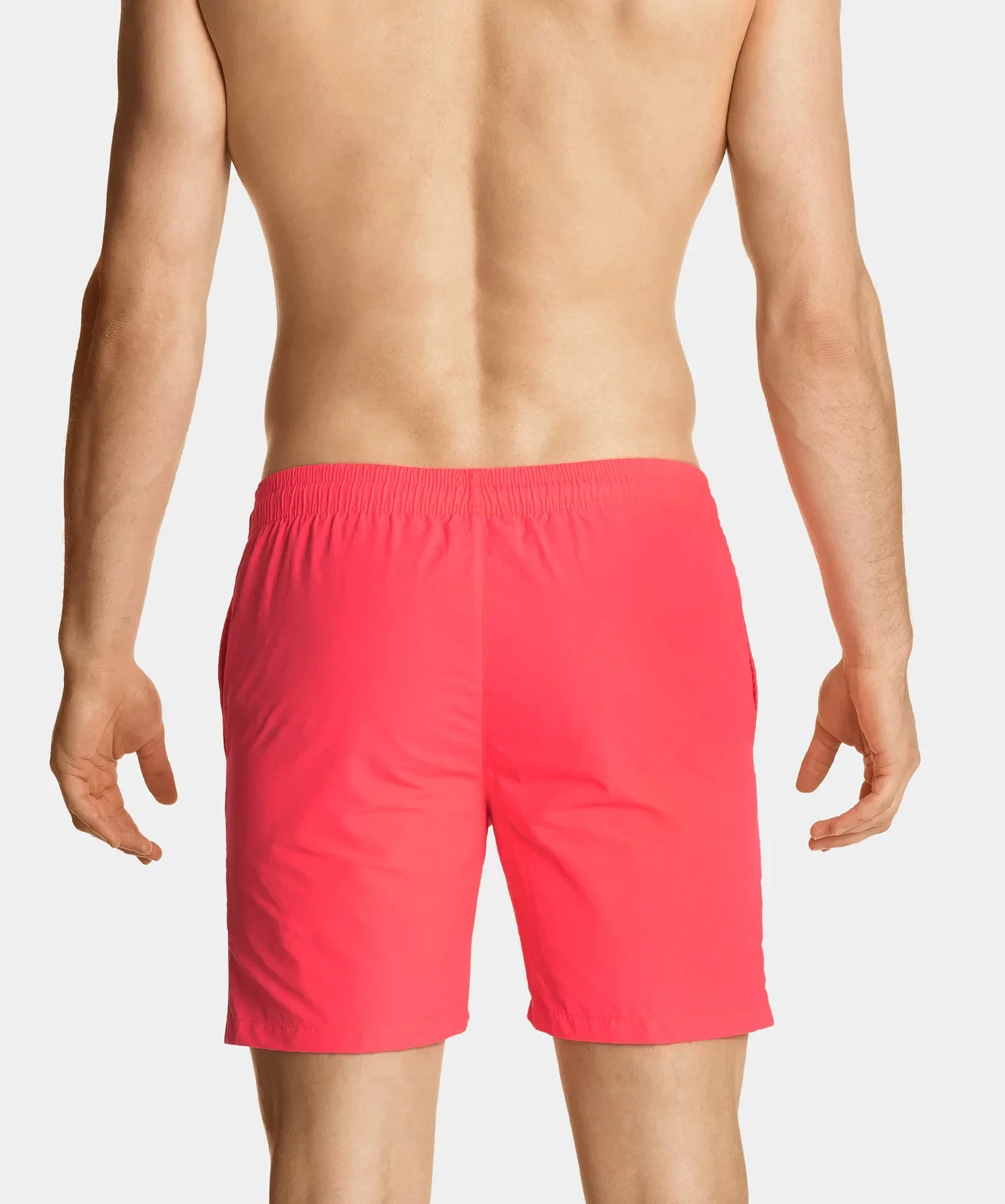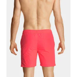 Szorty plażowe w intensywnie koralowym odcieniu mają uniwersalnej długości nogawki oraz podobnie - uniwersalnej wysokości stan. W talii szorty wiązane są na biały sznurek. Na lewej nogawce znajduje się niewielkich rozmiarów gumowe logo Atlantic, a po bokach komfortowe i praktyczne kieszenie. Do wykonania szortów sięgnęliśmy po wysokiej jakości nylon, który odznacza się sztywnością w dotyku (tzw. paper touch), nierozciągliwością i nieodkształcaniem się. Materiał jest ponadto odporny na działanie promieni słonecznych. W środku szorty wykończone są siatkową podszewką wykonaną z poliestru.