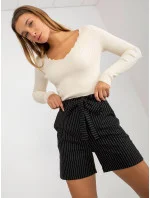 Šedé dámské elegantní pruhované šortky s kapsami .
