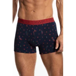 Bokserki bawełniane z motywem świątecznym. Bokserki mają krótszą nogawkę, nadającą swobodę ruchu i sportowego charakteru, w pasie znajduje się szeroka guma z logo LAMA. W opakowaniu 2 sztuki w wyjątkowych kolorach - granatowym i czerwonym. Każda para bokserek jest starannie wykonana z najwyższej jakości bawełny, aby zapewnić Ci nie tylko komfort, ale również trwałość i długotrwałe zadowolenie.