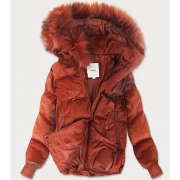 Rudá dámská manšestrová bunda s kapucí (7696)