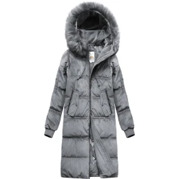 Šedá dámská manšestrová zimní bunda s kapucí (7763)