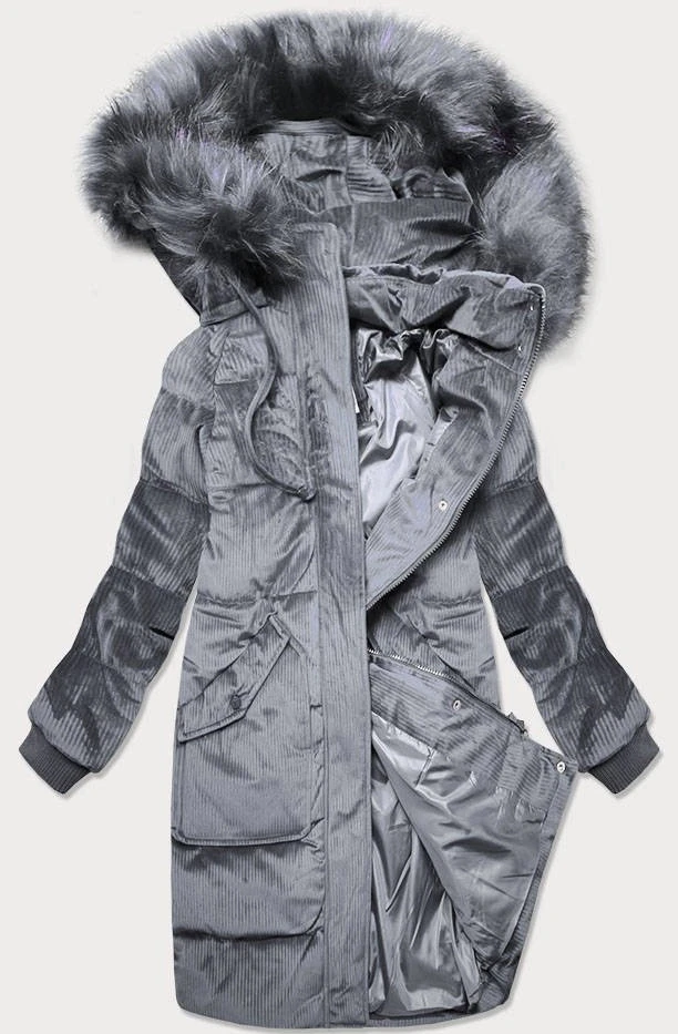 Šedá dámská manšestrová zimní bunda s kapucí (7764)