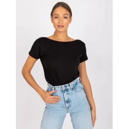 Černé dámské tričko T-shirt basic s výstřihem vzadu Feel Good (4662-22)