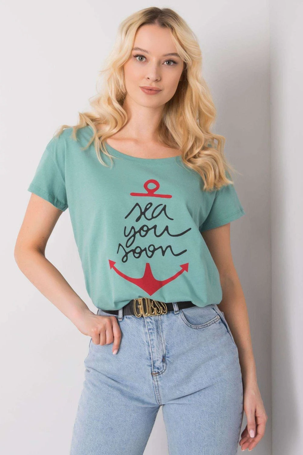 Dámské tričko s krátkými rukávy a kulatým výstřihem, ozdobný potisk na přední straně.