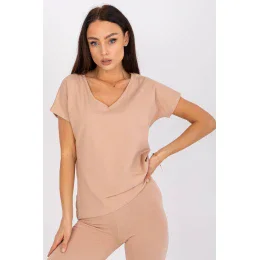Tričko rovného střihu s krátkými rukávy a výstřihem.