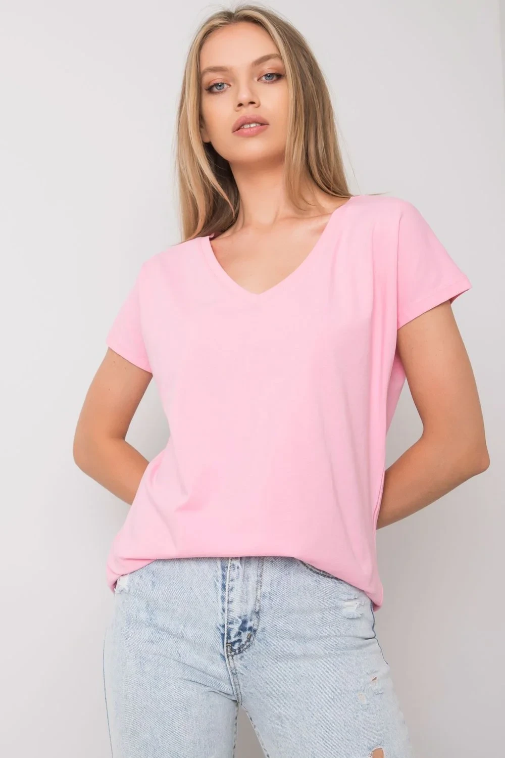 Dámské tričko s krátkým rukávem a výstřihem do V. Návrh pro mnoho příležitostí.