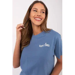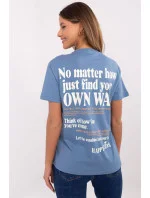 Dámské tričko s klasickým střihem, vyrobené z vysoce kvalitní bavlny, která zajišťuje pohodlí při nošení. Na přední straně je jemný potisk s nápisem, který tričku dodává módní a minimalistický charakter. Zadní stranu zdobí ozdobný potisk spojený s dynamickými nápisy, které celku dodávají originální výraz. Model standardní délky s krátkými rukávy a kulatým výstřihem skvěle padne do každodenního outfitu. Ideální volba pro ženy, které ocení pohodlí a styl v jednom.